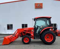 This L3770DLXC tractor is 37 horsepower and comes with a 3 Cylinder Diesel Engine plus a 3 speed HST Transmission. This is a cab unit and comes with door mirror kit, cloth seat, rear work light, brush guard, and radio. Front tires are 27×8.5-15.4 R4 & Rear Tires are 15×19.5 R4. The LA806 Front-End Loader is standard and comes with a 72″ Quick Attached bucket and a Bolt-On Edge.